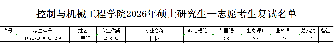 控制与机械工程学院2026年硕士研究生一志愿考生复试名单
