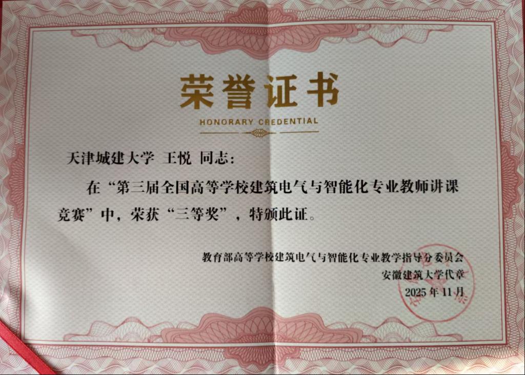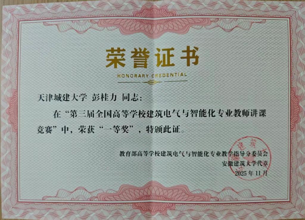 近日,由教育部高等学校建筑电气与智能化专业教学指导分委员会主办、郑州轻工业大学承办的“第三届全国高等学校建筑电气与智能化专业教师讲课竞赛”圆满落幕。经过激烈角逐,控制与机械工程学院教师彭桂力荣获一等奖,教师王悦荣获三等奖,充分展示了学院教师扎实的教学功底和卓越的风采。