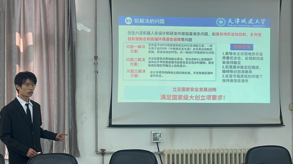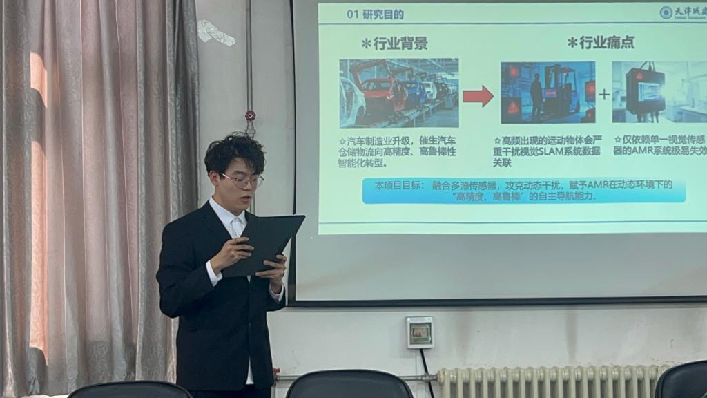 本次答辩会历经前期动员、项目征集、初审筛选等环节,最终遴选25组聚焦机械设计制造、智能控制、自动化装备、工业机器人、智能制造等专业领域的优质项目进入现场答辩。各项目负责人通过PPT演示,围绕项目研究背景、创新亮点、技术方案、团队分工、预期成果及经费规划等内容展开详细阐述。参赛团队立足专业前沿,紧扣行业实际需求,将专业理论与实践应用相结合,展现出扎实的专业素养、活跃的创新思维和积极的科研态度,项目的创新性与实用性获得评委老师的充分认可。